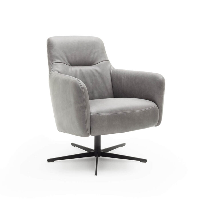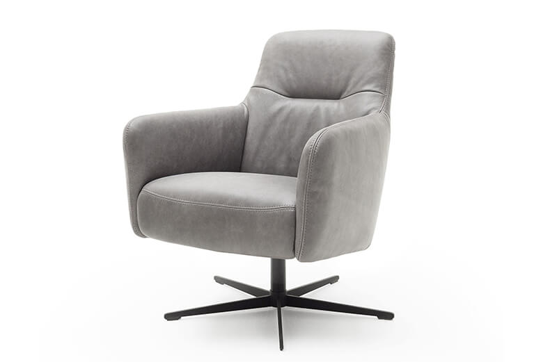 Der stabile schwarze Kreuzfuß sorgt nicht nur für eine elegante Optik, sondern auch für einen sicheren Stand und ermöglicht eine 360-Grad-Drehung des Sessels.