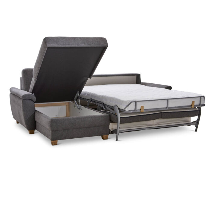 Es ist außerdem mühelos in ein vollwertiges Doppelbett mit hochwertiger Kaltschaummatratze ausklappbar. Weiterhin befindet sich unter der Ottomane ein Bettkasten, in dem du bequem alles verstauen kannst, was dein Übernachtungsbesuch benötigt.