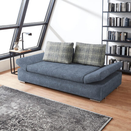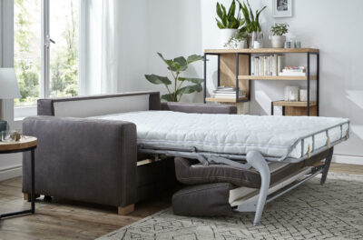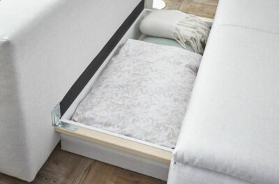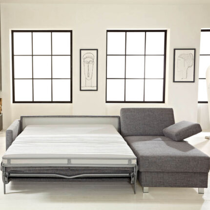 Fasse einfach an der Rückenlehne neben der Ottomane an und ziehe diese nach vorne. Schon entfaltet sich die integrierte Kaltschaummatratze und das Bett für deine Gäste steht zur Verfügung.