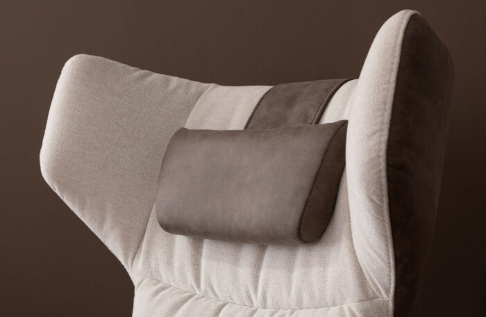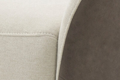 Der zweifarbige Stoffbezug ist pflegeleicht und langlebig. Um den Sessel in bestem Zustand zu halten, empfehlen wir eine regelmäßige Reinigung mit einem weichen Polsteraufsatz für den Staubsauger.