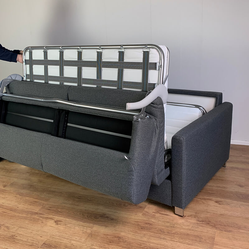 Das ist besonders praktisch für kleine Räume, in denen nur ein schmales Sofa Platz findet. Beachtet werden sollte nur, dass vor dem Sofa genügend Platz ist, um die Liegelänge von ca. 200cm ausklappen zu können.