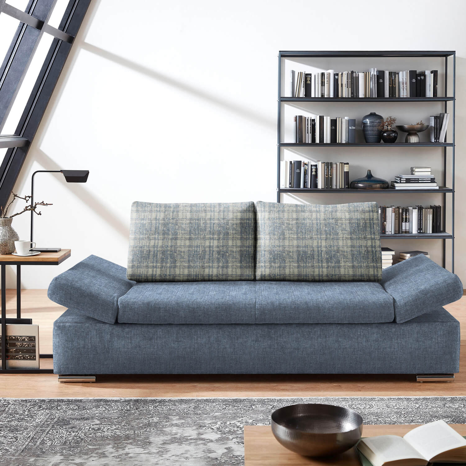 Der pflegeleichte Bezug aus Flachgewebe in Blau wird dich begeistern. Staub oder Krümel kannst du einfach mit einem Staubsauger entfernen, am besten nutzt du hierfür die Polsterdüse. Kleinere Flecken entfernst du am besten mit einem nebelfeuchten fusselfreien Tuch. Der gemusterte Bezug der Kissen bildet einen hübschen Kontrast zum Rest des Sofas.