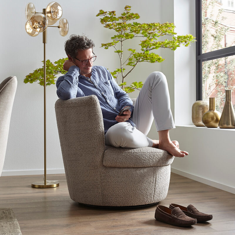 Die 360° Drehfunktion verleiht diesem Sessel zusätzliche Bequemlichkeit. Drehe ihn nach Belieben, um den perfekten Blickwinkel zu finden oder einfach nur, um sich frei und flexibel zu bewegen.