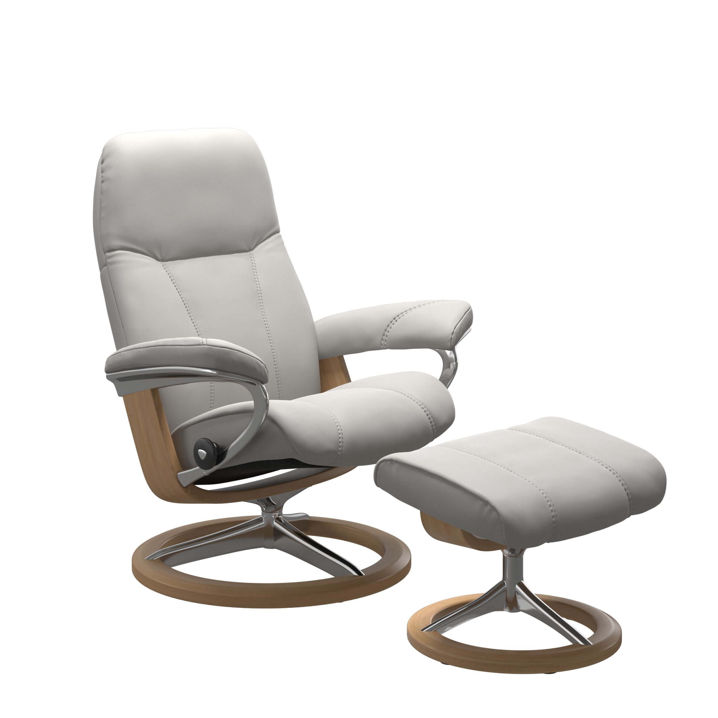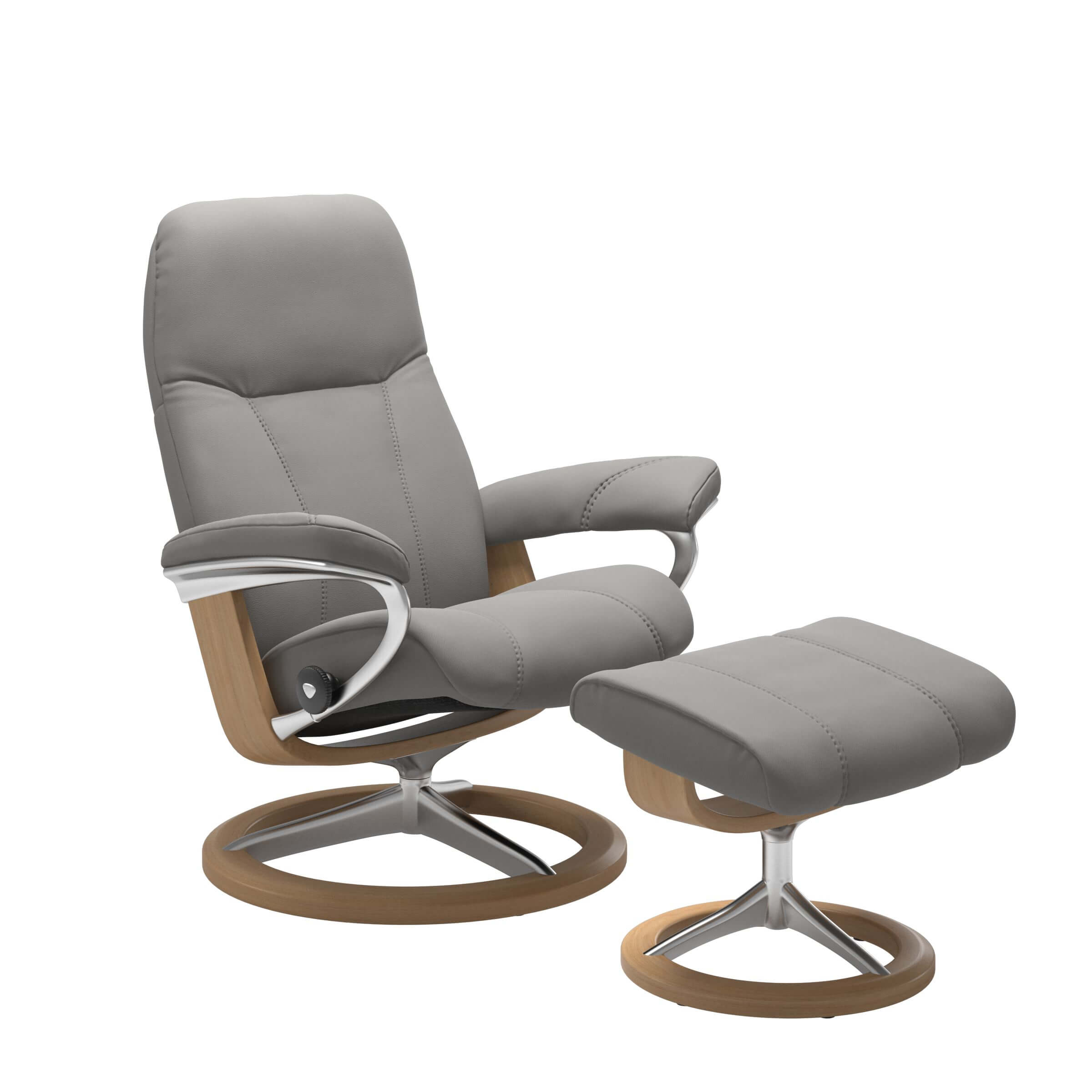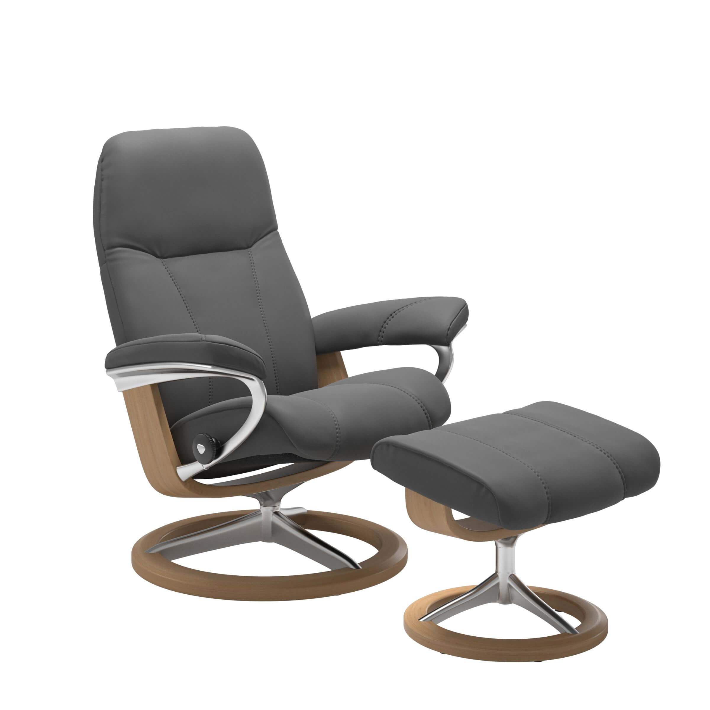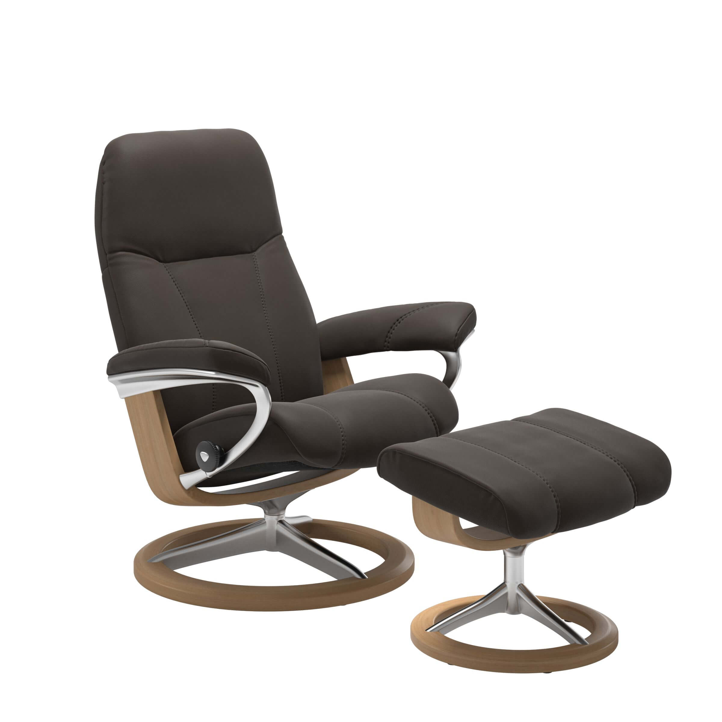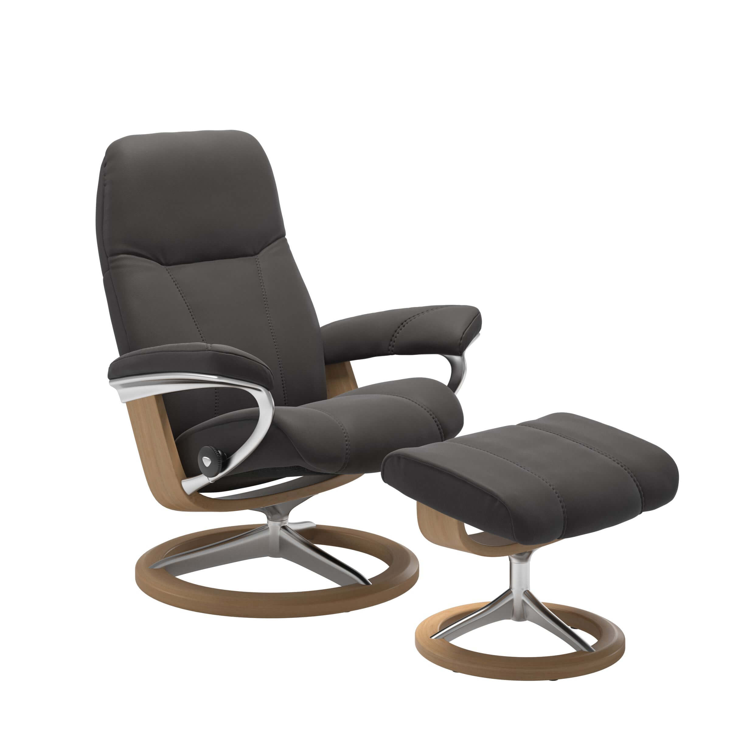 Das Signature Gestell in chrom und schwarz gebeizt harmoniert perfekt mit der dunklen Sitzfläche des Stressless Sessels. Aber nicht nur in puncto Design und Optik ist der Stressless Conusl Signature eine echte Augenweide.
