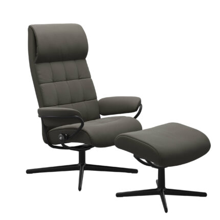 Ein besonderer Eyecatcher des Stressless Sessel London ist sein zeitloses Cross-Gestell, das in den Varianten matt schwarz und chrom bestellbar ist.