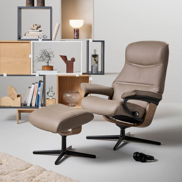 Der Stressless® Philip mit Cross Untergestell vereint zeitlose Eleganz mit wohldurchdachtem Komfort. Sein markanter Look wird durch das schlanke Kreuzfuß-Gestell in Holz und Metall unterstrichen – ein harmonisches Zusammenspiel von Natürlichkeit und moderner Leichtigkeit.