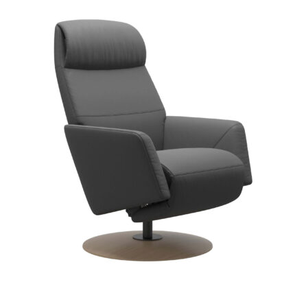 Der Stressless Sessel Scott ist mit zwei verschiedenen Untergestellen erhältlich. Wähle den eleganten Disc-Holzteller oder das moderne Sirius-Metallgestell und passe den Sessel so deiner Einrichtung an.