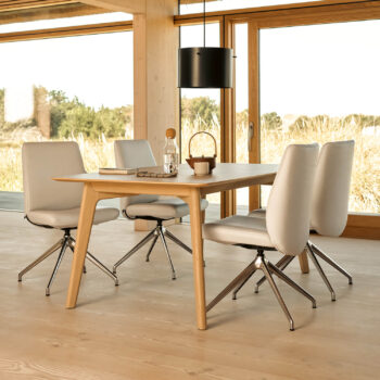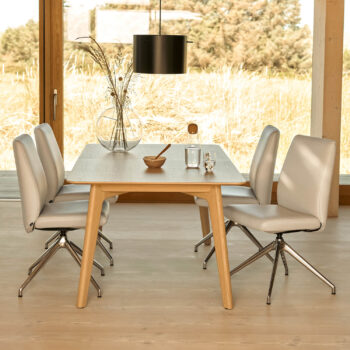Ein besonderes Highlight ist das Metall Drehgestell D350. Es ermöglicht dir, den Stuhl um 360 Grad zu drehen und sorgt damit für zusätzliche Bewegungsfreiheit am Tisch. Gleichzeitig unterstreicht das schlanke Metallgestell die moderne, elegante Optik und bietet dir eine stabile und langlebige Basis.