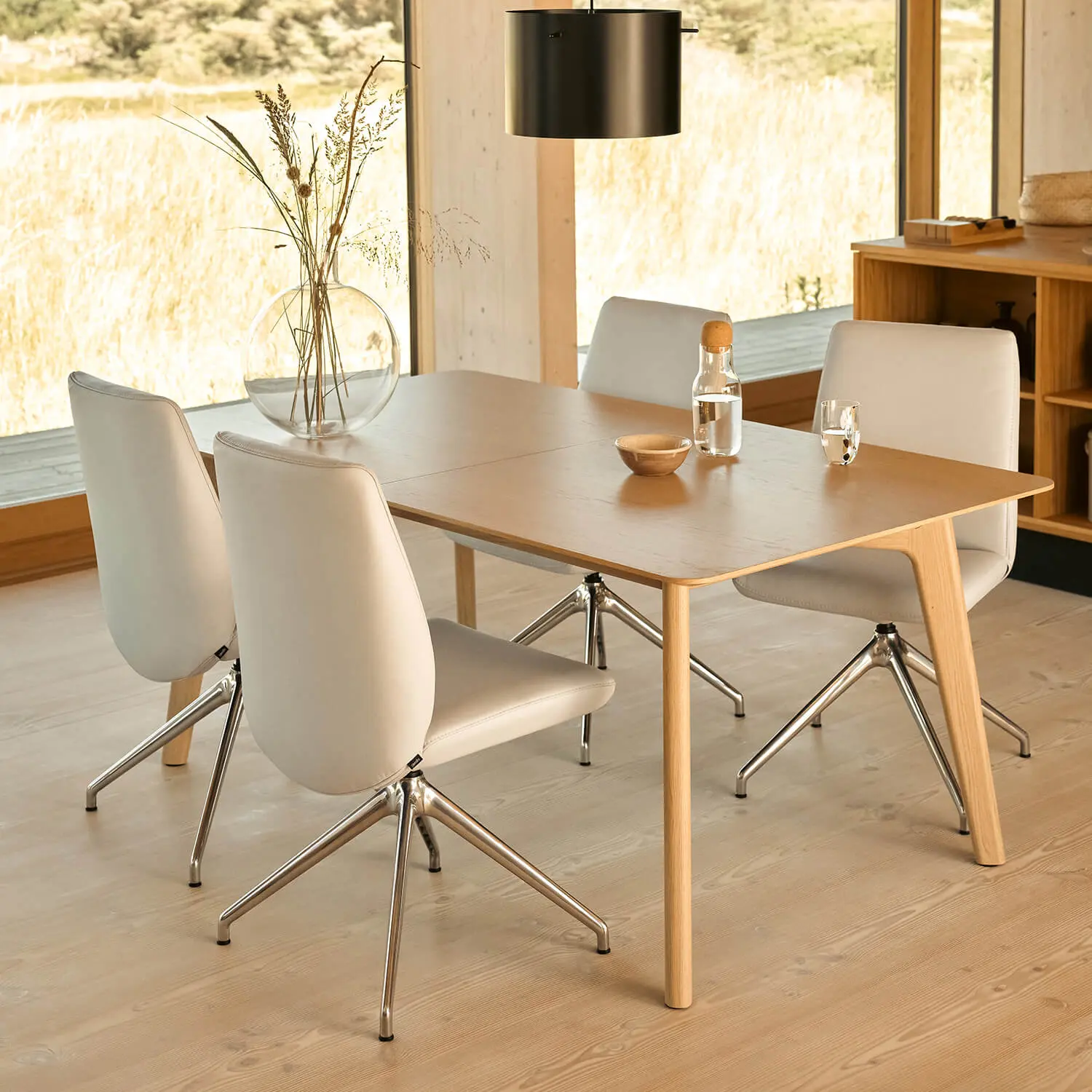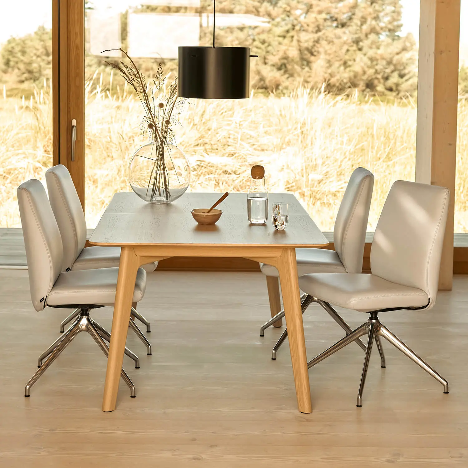 Ein besonderes Highlight ist das Metall Drehgestell D350. Es ermöglicht dir, den Stuhl um 360 Grad zu drehen und sorgt damit für zusätzliche Bewegungsfreiheit am Tisch. Gleichzeitig unterstreicht das schlanke Metallgestell die moderne, elegante Optik und bietet dir eine stabile und langlebige Basis.