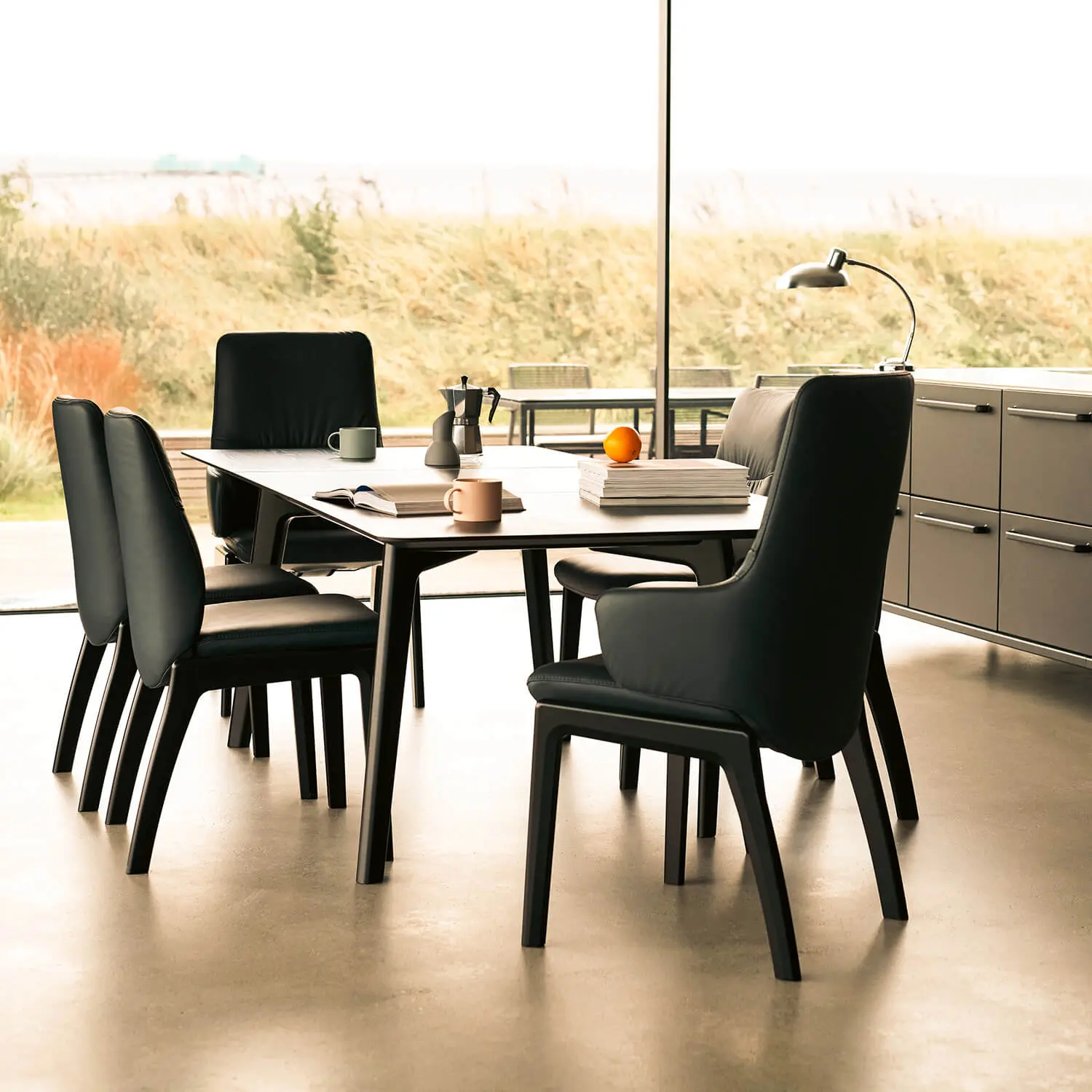 Beim Sitzen zählt vor allem ein angenehmes Gefühl – und genau hier setzt das Balance&Glide™ System von Stressless® an. Die durchdachte Technik passt Sitzfläche und Rückenlehne sanft deinen Bewegungen an, ganz ohne manuelle Einstellungen. Egal ob beim gemeinsamen Essen oder bei einer entspannten Lesepause, mit einem Stressless® Esszimmerstuhl genießt du jederzeit eine harmonische und bequeme Sitzposition.