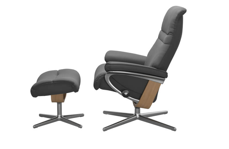 Der Stressless Sunrise M Cross Untergestell passt sich mit seinen patentierten Stressless Funktionen gekonnt den Bewegungen deines Körpers an und sorgt so für ein ausgeglichenes und gesundes Sitzen oder Liegen.